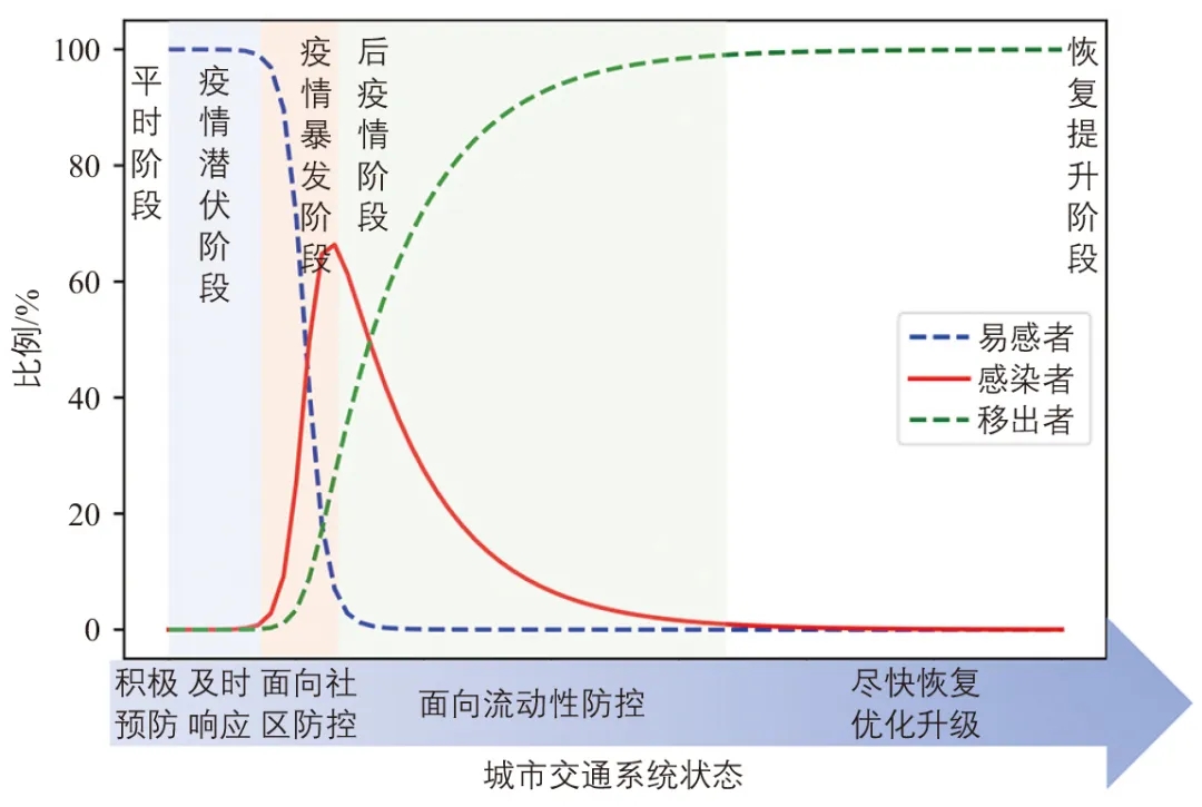 突發(fā)公共衛(wèi)生事件正逐步成為全球經(jīng)濟與安全的最大風險之一,城市交通系統(tǒng)必須具備韌性才能應對挑戰(zhàn)。作者根據(jù)突發(fā)公共衛(wèi)生事件疫情特征,將城市交通系統(tǒng)的經(jīng)歷過程分為5個階段,提出支持狀態(tài)有效切換的韌性城市交通系統(tǒng)特征。針對各個階段的差異性給出城市防疫交通系統(tǒng)韌性提升策略。