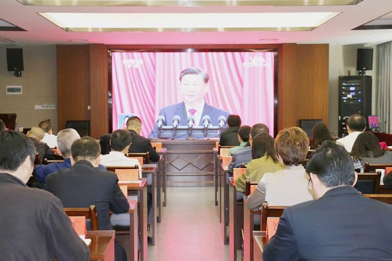 圖為集團(tuán)黨委組織黨員干部集中收看黨的二十大開幕會(huì)盛況
